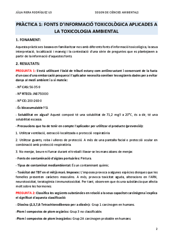 He publicado nuevos practicas de 2º Toxicología Ambiental y Salud Pública: Memoria-practiques-toxicologia.pdf