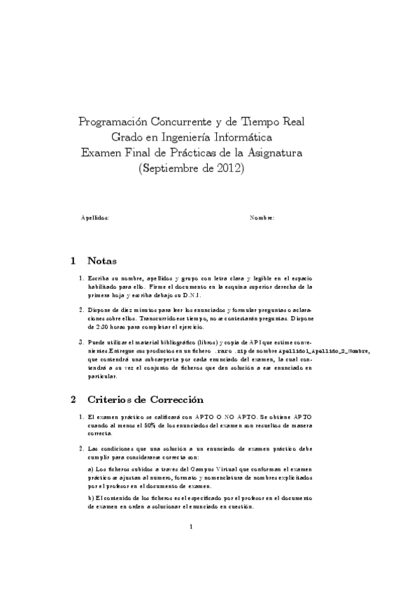 He publicado nuevos examenes de 3º Programación Concurrente y de Tiempo Real: prac_junio_12_13.pdf