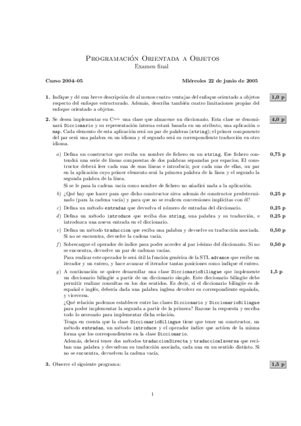 He publicado nuevos examenes de 1º Metodología de la Programación: Examen Junio 2006 MP.pdf
