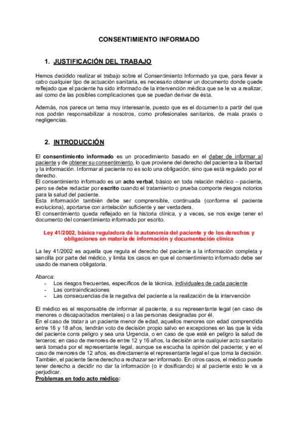 He publicado nuevos trabajos de 3º COMUNICACION ASISTENCIAL, ETICA MEDICA Y LEGISLACION I: Legislación I. Consentimiento informado