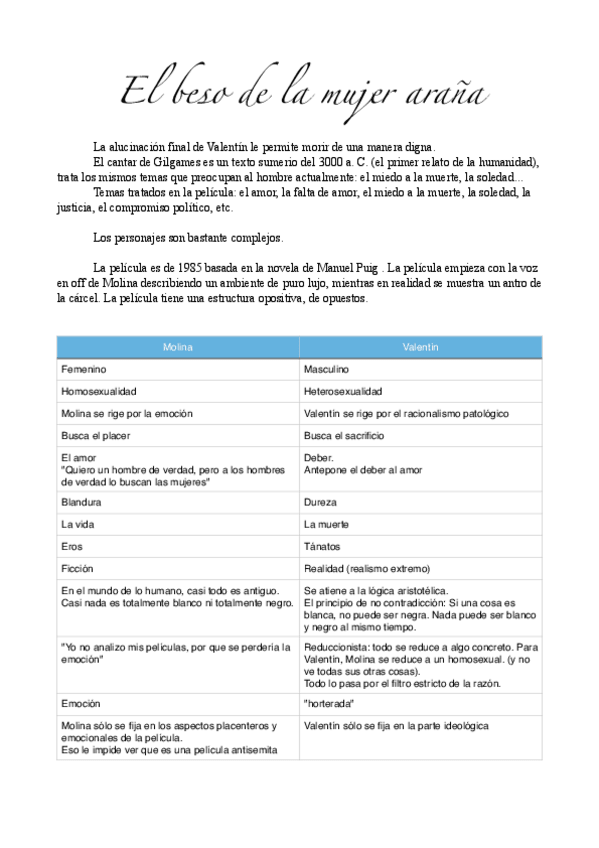 Comentario de la película "El beso de la mujer araña" Curso 2015/2016