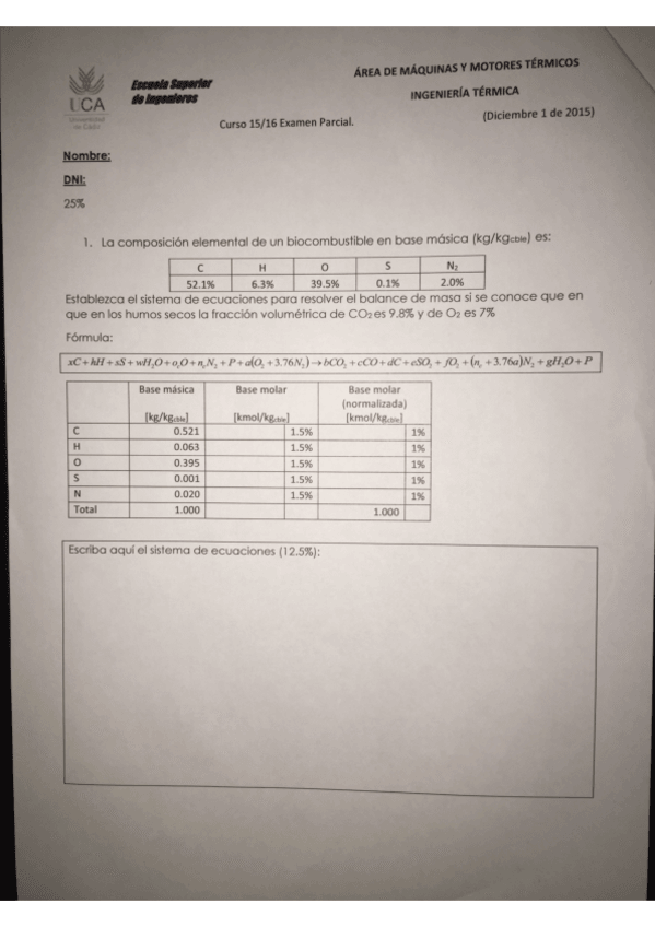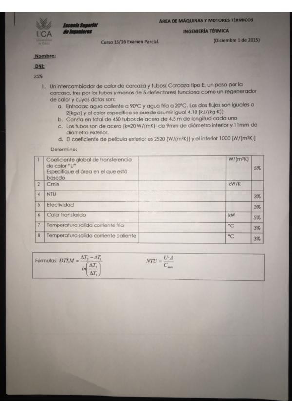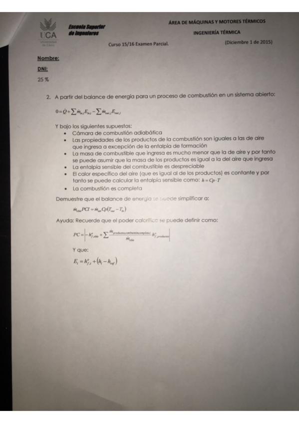 He publicado nuevos examenes de 3º Ingeniería Térmica: Primer Parcial 2016