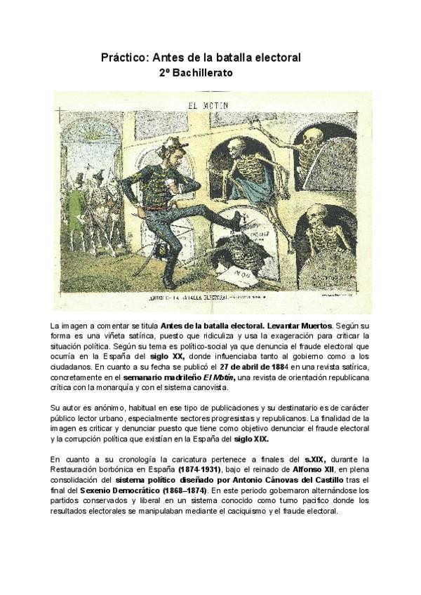 Comentario de texto histórico resuelto de Antes de la batalla electoral.