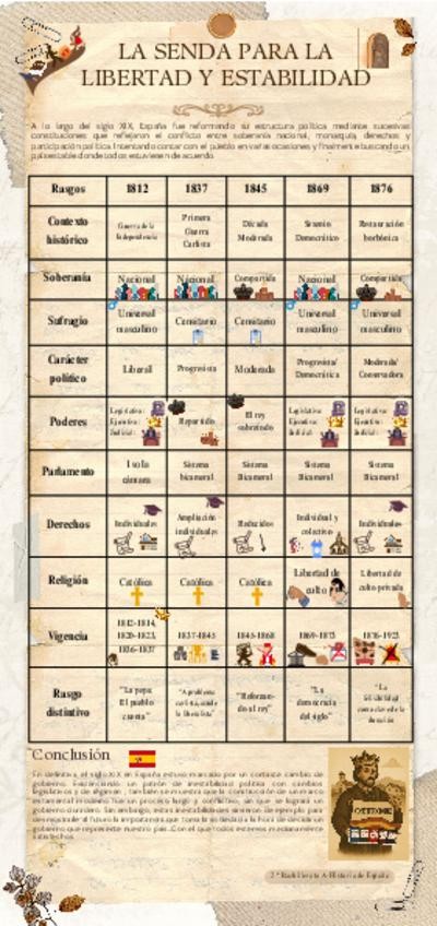 Resumen de las distintas constituciones a lo largo de los años en España. Desde 1812 hasta 1872.