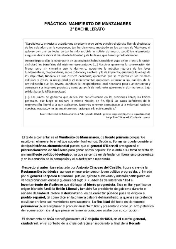 Práctico de Manzanares con su análisis y contexto histórico.