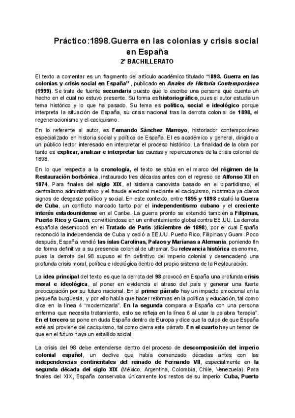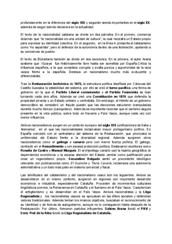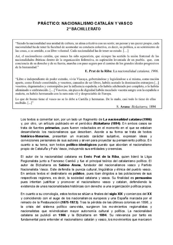 El nacionalismo catalán y vasco y su comentario de texto histórico resuelto.