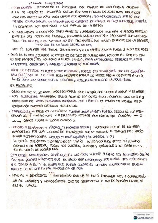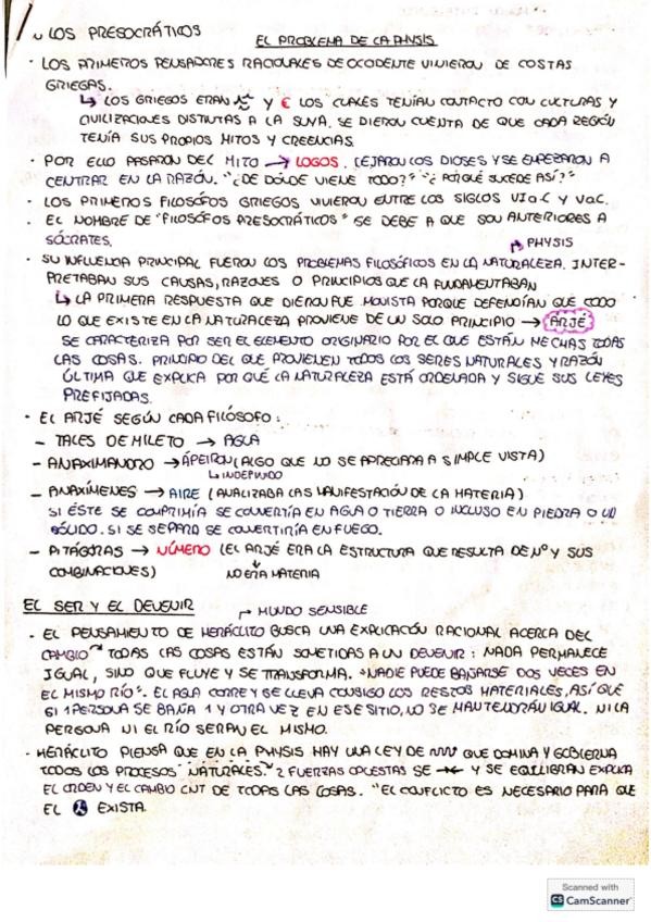 Apuntes hechos a mano de los presocráticos, el pluralismo, los sofistas, Sócrates, el filósofo de las ideas, , cuerpo y alma, y la sociedad perfecta.