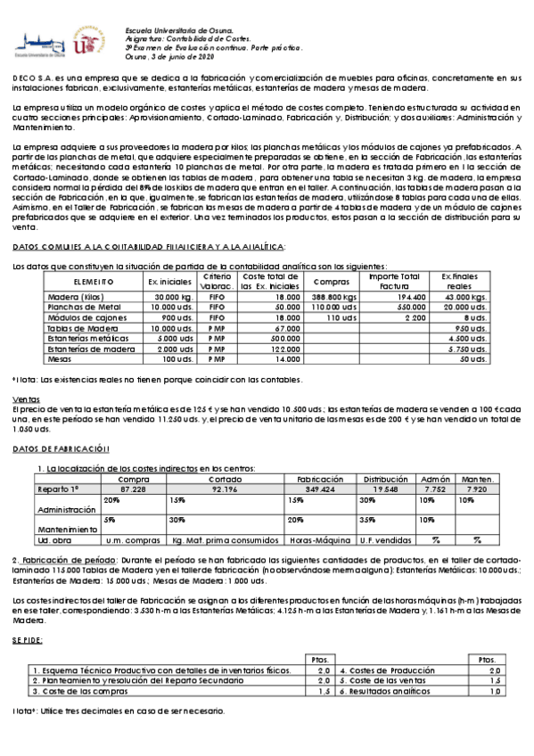 He publicado nuevos examenes de 1º Contabilidad de Costes: EXÁMENES RESUELTOS