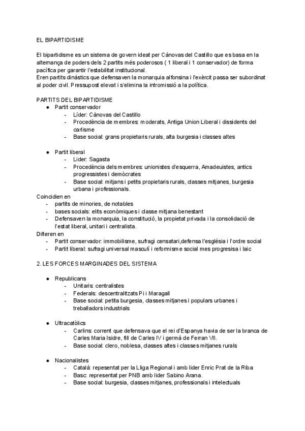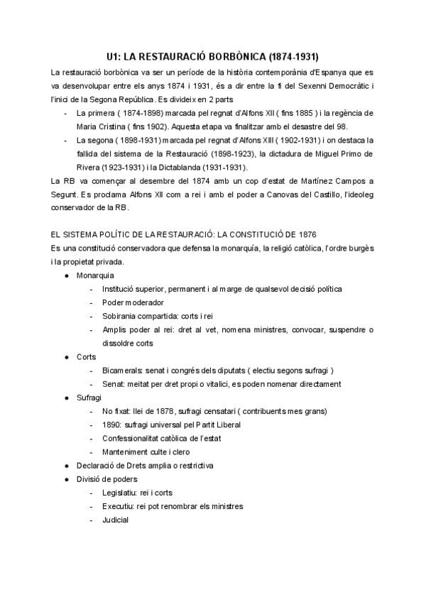 apuntes del primer tema de historia de 2n bachi en catalan La restauració borbònica