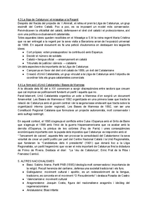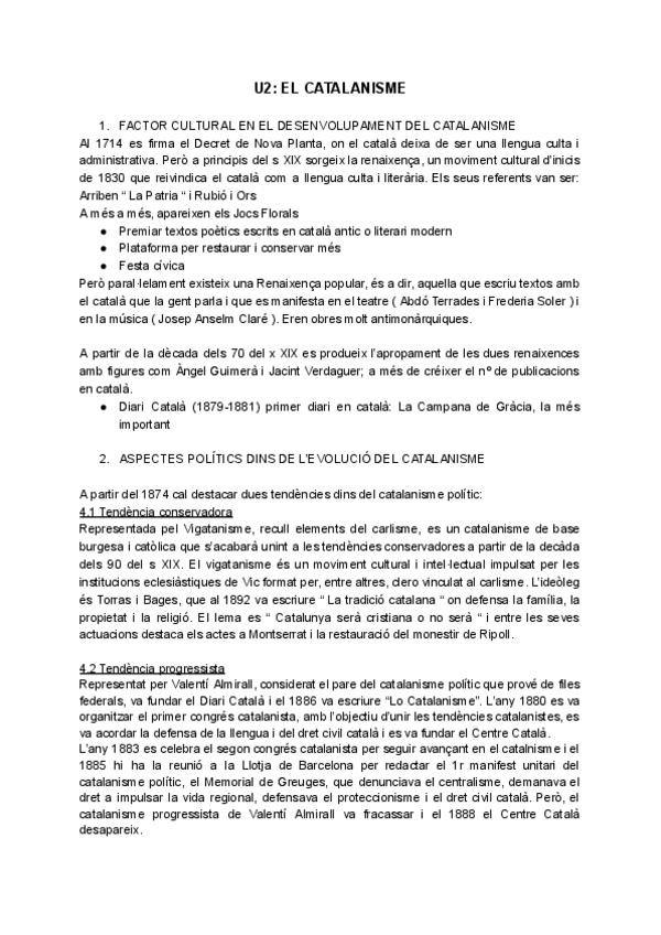 apuntes del segundo tema de historia de 2n de bachi en catalan El catalanisme