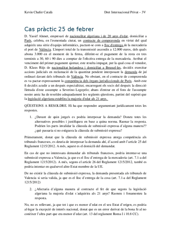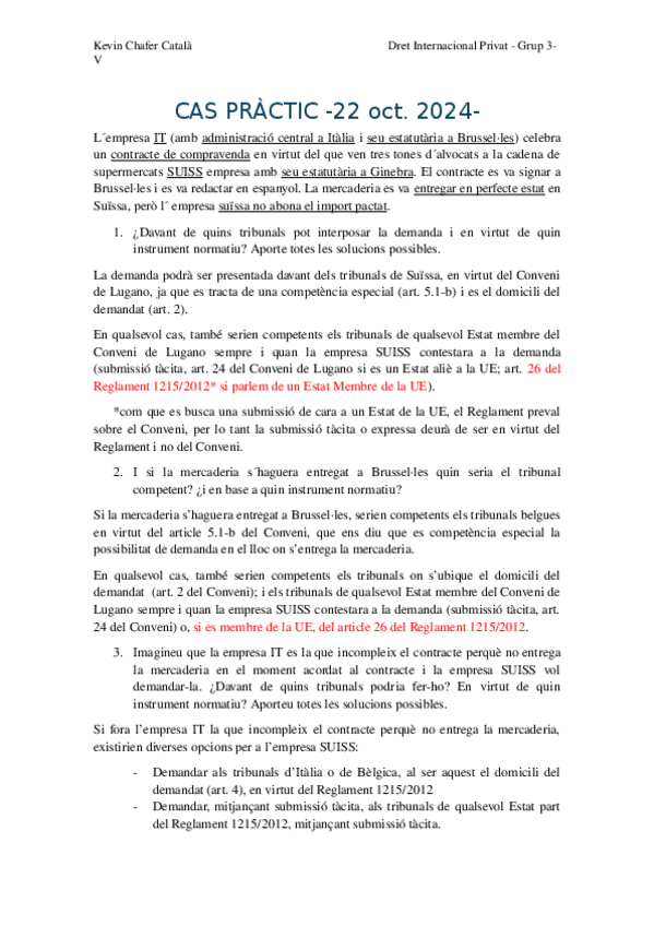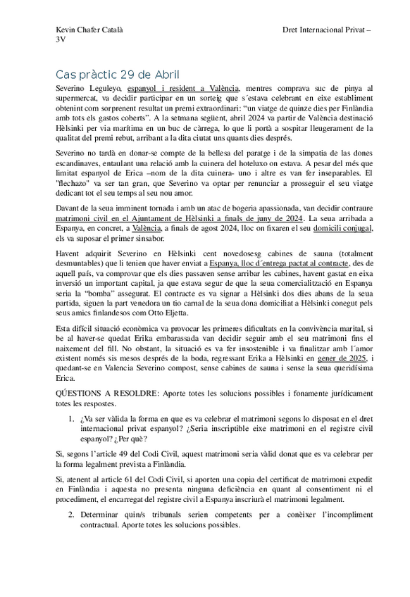 He publicado nuevos practicas de 3º Derecho Internacional Privado: Practicas 1r cuatri