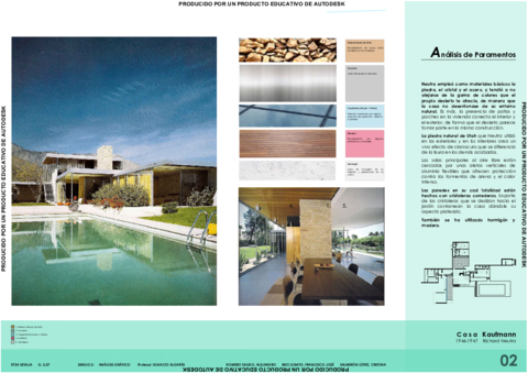 Análisis espacial, funcional, estructural, vistas soleamiento y vientos y paramentos. Ejercicio 3. Análisis de una casa. Richard neutra