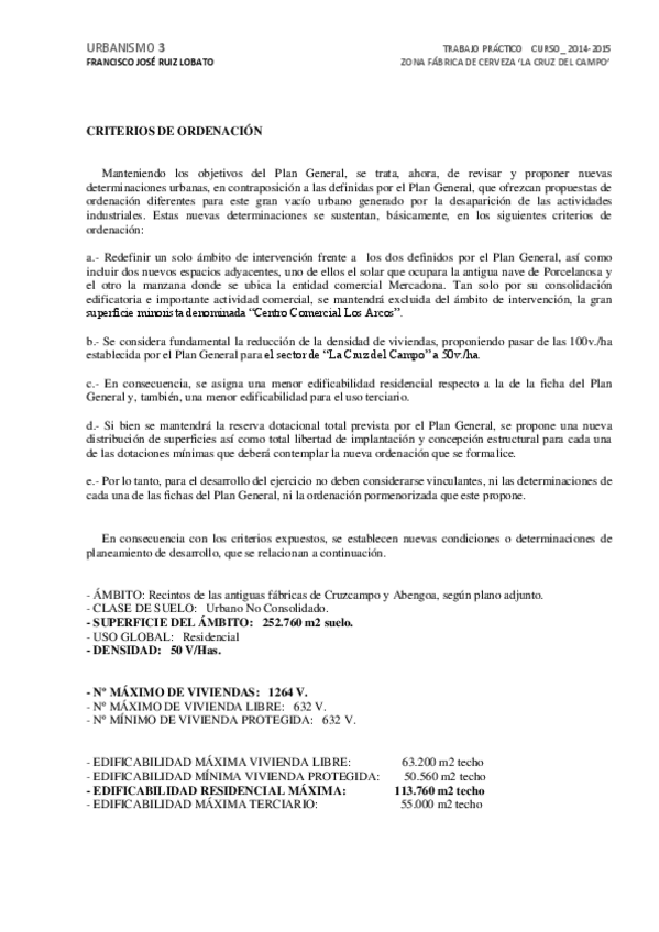 Diagnostico. Propuesta y Desarrollo Planimétrico. Volumen segun ordenanzas.