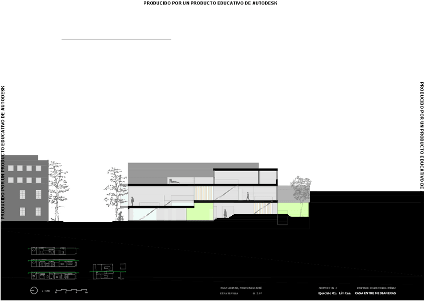 SITUACION IDEA Y PRIMERAS PLANTAS DEL EJERCICIO 1 -limites- Vivienda entre medianeras. El porvenir. Sevilla