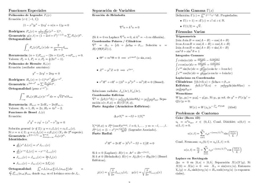 Formulario a Latex de la asignatura de Métodos Matemáticos II