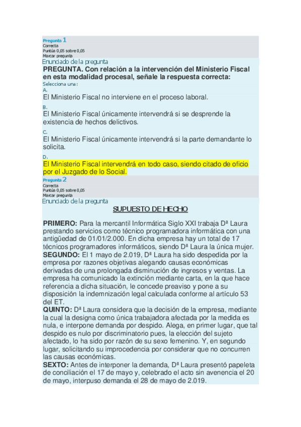 He publicado nuevos test de 3º Derecho Procesal Laboral: Preguntas test