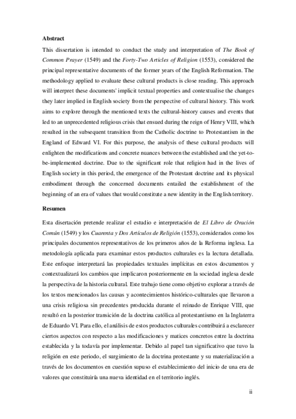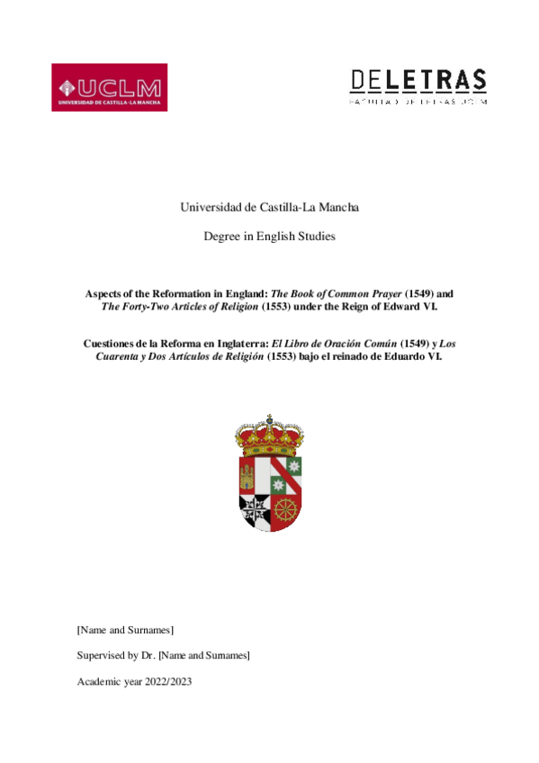 Aspects of the Reformation in England: The Book of Common Prayer (1549) andThe Forty-Two Articles of Religion (1553) under the Reign of Edward VI. Cuestiones de la Reforma en Inglaterra: El Libro de Oración Común (1549) y Los Cuarenta y Dos Artículos de
