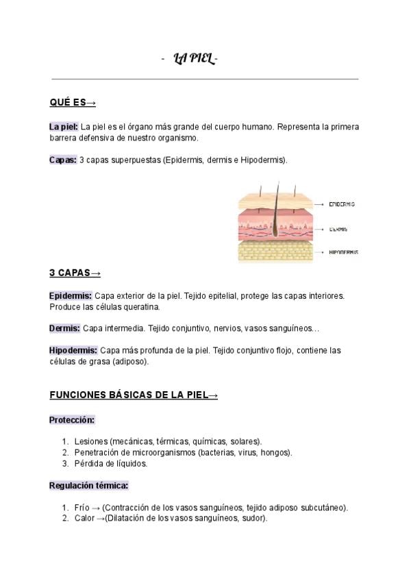 Apuntes bienestar del paciente. Contenidos: - La piel. - Capas. - Funciones básicas. - Anejos cutáneos. - Lesiones. - Escalas. - Patologías. - Procedimientos.