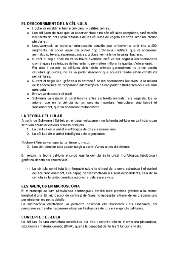 Resum de la cèl·lula, la seva estructura i funció.