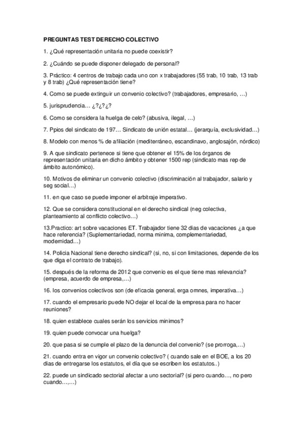 He publicado nuevos examenes de 3º Derecho Colectivo del Trabajo: PREGUNTAS-TEST-DERECHO-COLECTIVO.docx