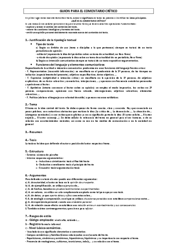 Guión completo para el comentario de texto de lengua de cara a la EBAU. Bien detallado y específico.