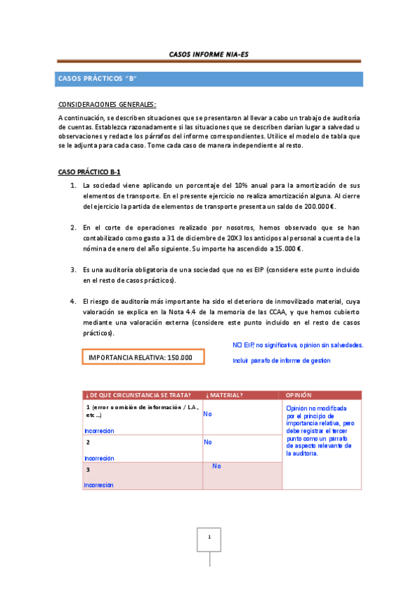 He publicado nuevos practicas de 3º Introducción a la Auditoría: BOLETIN INFORME CASOS -B- RESUELTO 2018.pdf