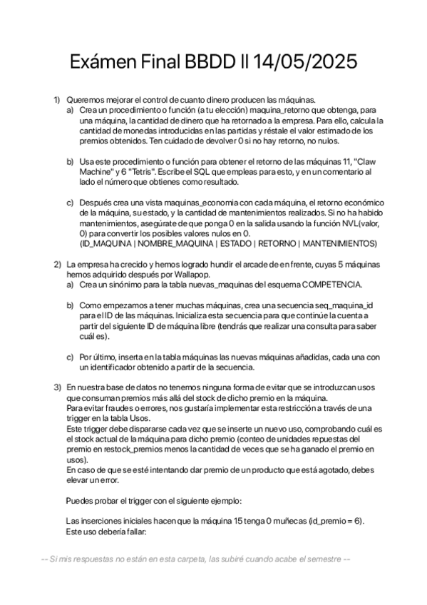 He publicado nuevos examenes de 2º Bases de Datos II: PRACTICO Final 24/25
