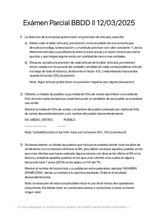He publicado nuevos examenes de 2º Bases de Datos II: PRACTICO Parcial 24/25