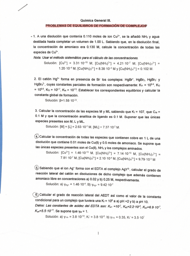 He publicado nuevos apuntes de 1º Química General Iii: Problemas de formación de complejos