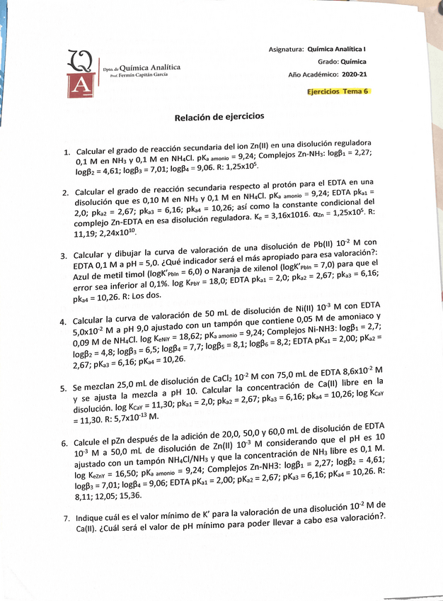 He publicado nuevos apuntes de 2º Química Analítica I: Ejercicios tema 6