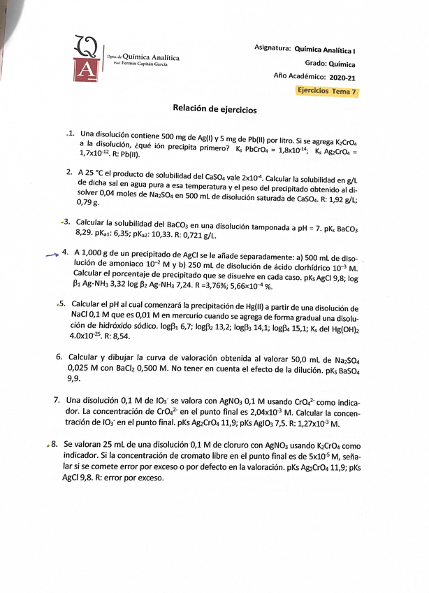 He publicado nuevos apuntes de 2º Química Analítica I: Ejercicios tema 7