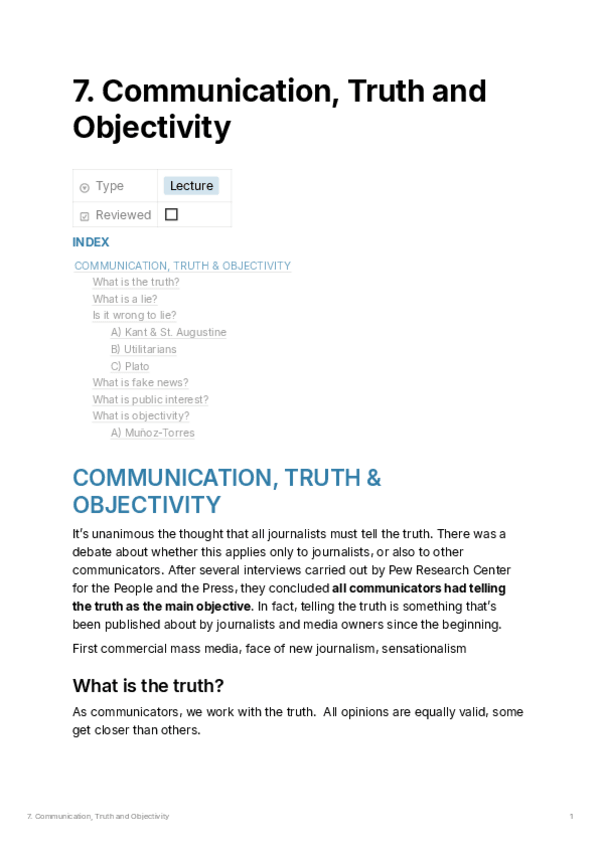 He publicado nuevos apuntes de 1º Teoría de la Comunicación y de la Información: 7. Communication Truth & Objectivity.pdf