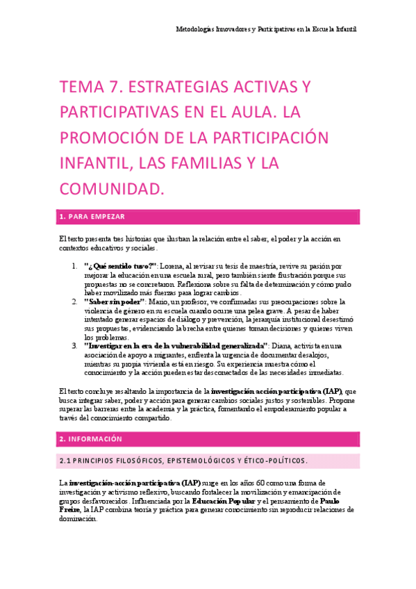 He publicado nuevos apuntes de 1º Metodologías Innovadoras y Participativas en la Escuela Infantil: TEMA-7.pdf
