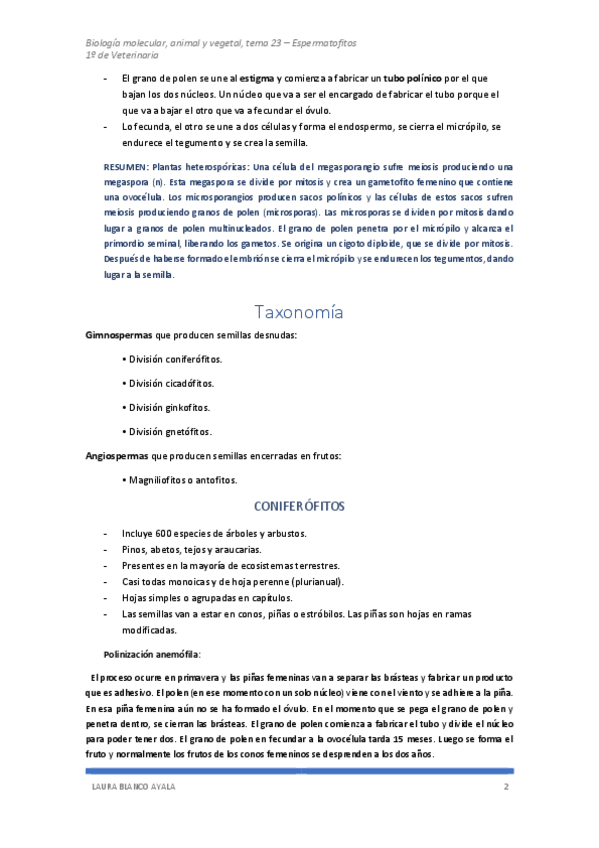 He publicado nuevos apuntes de 1º Biología Molecular, Animal y Vegeta: Tema 23 - Espermatofitos.pdf