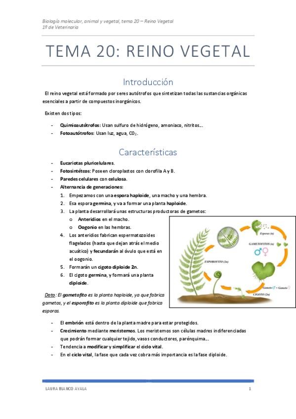He publicado nuevos apuntes de 1º Biología Molecular, Animal y Vegeta: Tema 20 - Reino Vegetal.pdf