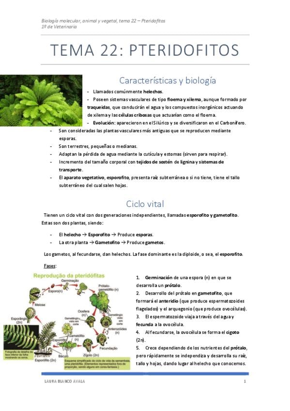 He publicado nuevos apuntes de 1º Biología Molecular, Animal y Vegeta: Tema 22 - Pteridofitos.pdf