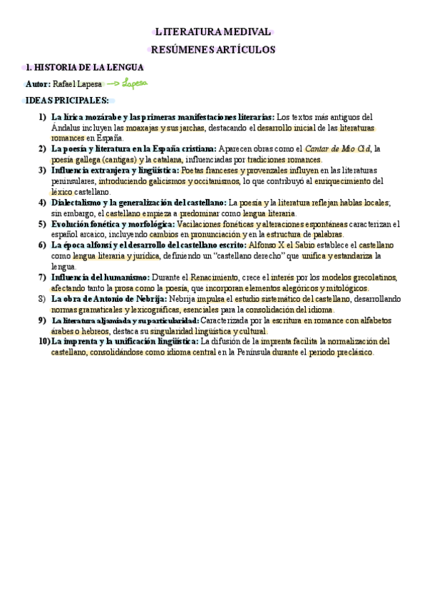 He publicado nuevos apuntes de 2º Literatura Española Medieval: Resúmenes de artículos Literatura medieval