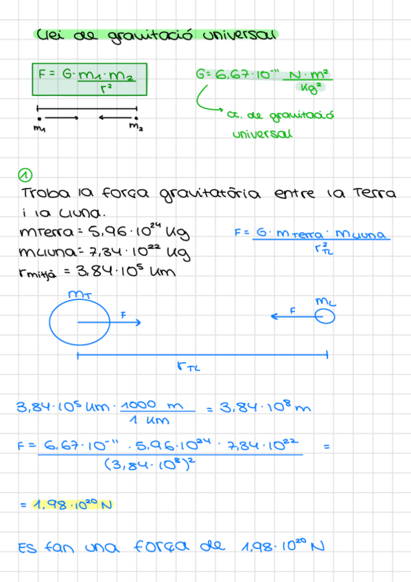 Fòrmules camp gravitatori 2n Batxillerat