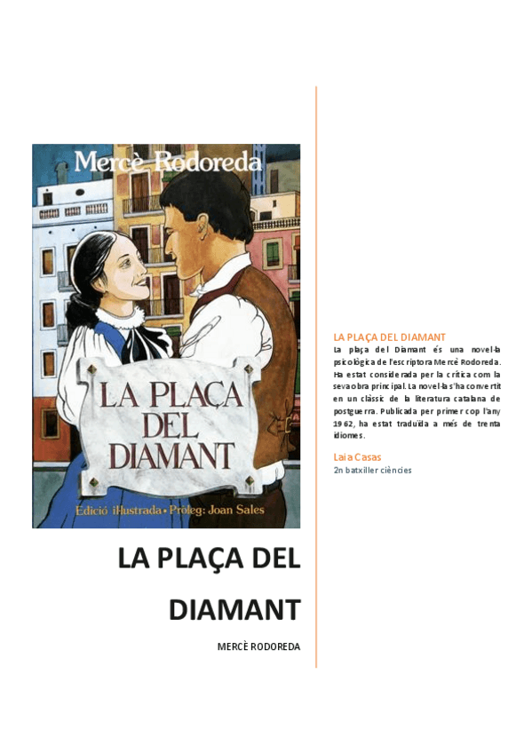 He subido un resumen de cada obra. El de la plaça del diamant está por capitulos😉junto a la descripción de personajes y otros rasgos importantes