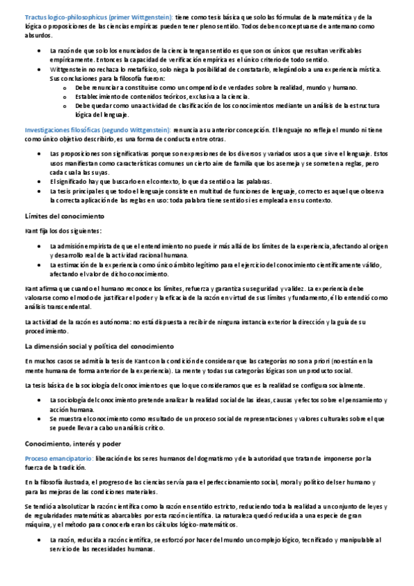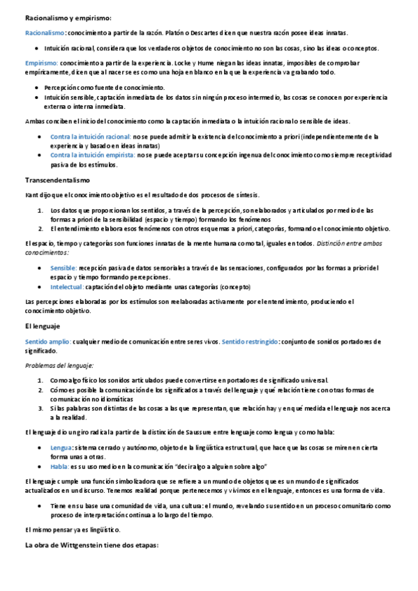 APUNTES FILOSOFÍA: Conocimiento (racionalismo y empirismo), lenguaje, dos etapas de Wittgenstein, la verdad, la posverdad...