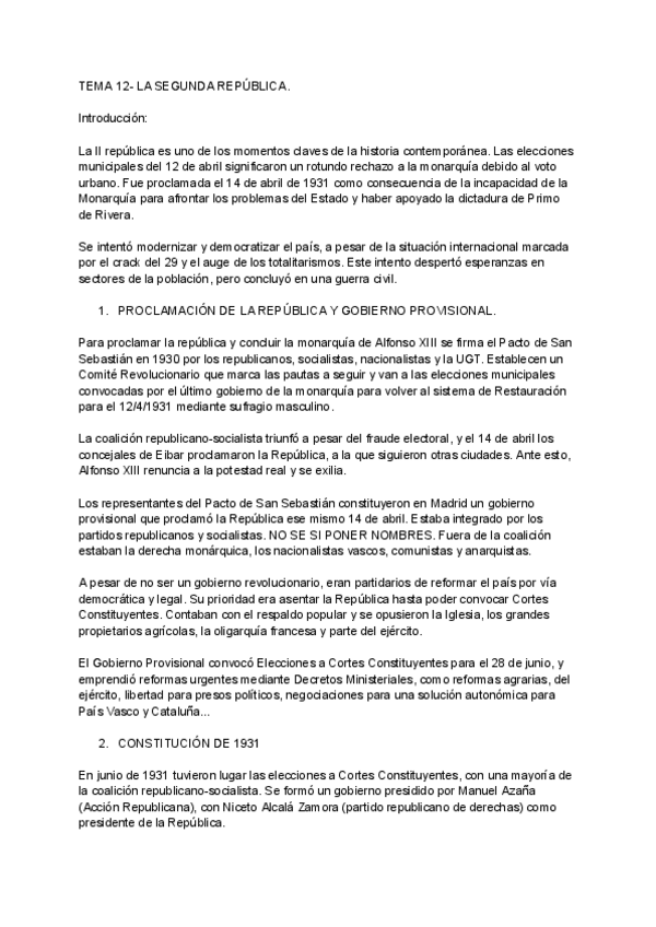 Segunda república, tema 12 selectividad historia de España.