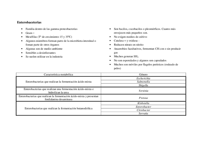 Tablas resumen de bacterias