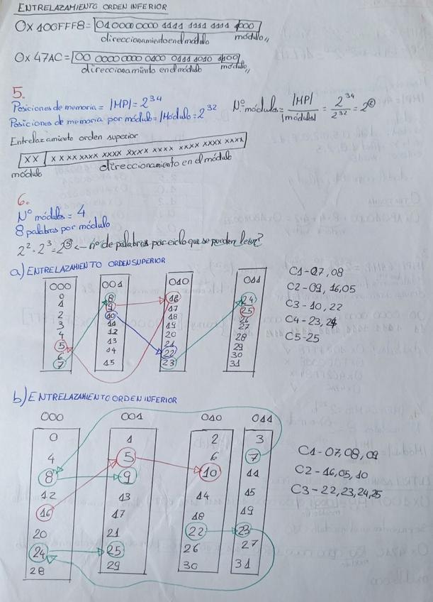 Ejercicios resueltos sobre entrelazamiento de memoria, cálculo de direcciones físicas y lógicas y organización de memoria. Explicado paso a paso como se pide en los exámenes de Fundamentos de Computadores.