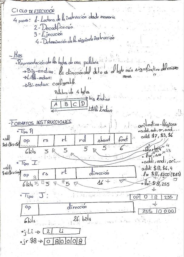Ejercicios resueltos de programación en MIPS centrados en los formatos de instrucción (R, I, J), uso de registros, codificación de instrucciones y traducción desde pseudocódigo. Explicado paso a paso de estilo práctico y orientado a examen.