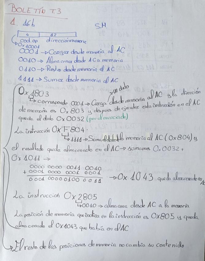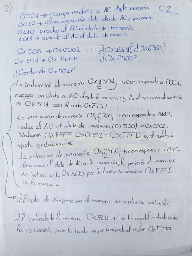Ejercicios resueltos sobre el funcionamiento del ciclo de instrucción, decodificación de código de operación, manejo del acumulador, y el cálculo de direcciones de salto en instrucciones tipo I (addi, bne, beq) y tipo J. Incluye ejemplos prácticos de cómo