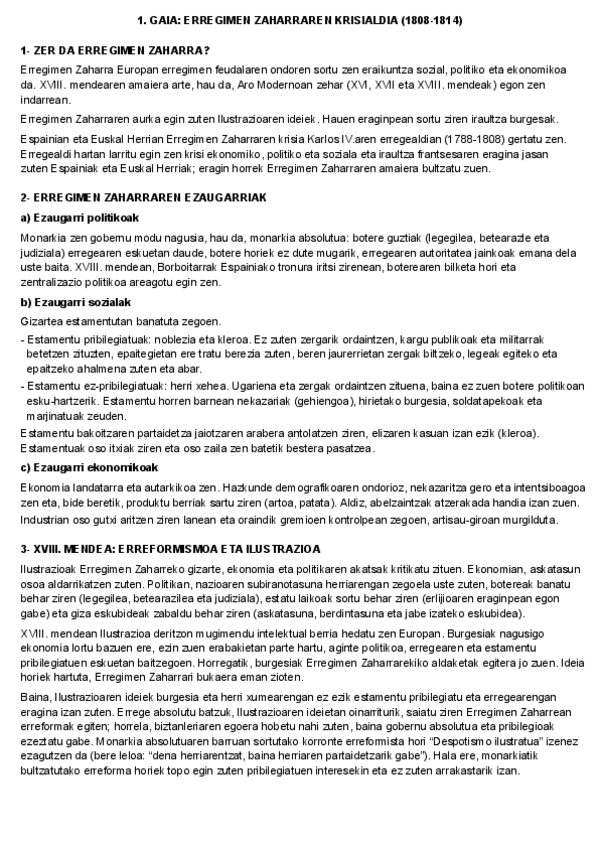 He publicado nuevos apuntes de Historia de España: HISTORIA 1. GAIA: ERREGIMEN ZAHARRAREN KRISIALDIA (1808-1814).pdf