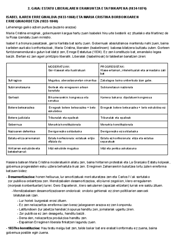 He publicado nuevos apuntes de Historia de España: HISTORIA 2.GAIA: ESTATU LIBERALAREN ERAIKUNTZA ETA FINKAPENA (1834-1874).pdf