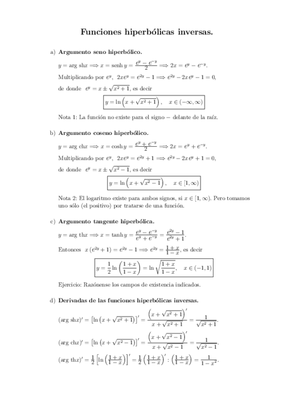 He publicado nuevos apuntes de 1º Cálculo I: Funciones-hiperbolicas-inversas.pdf