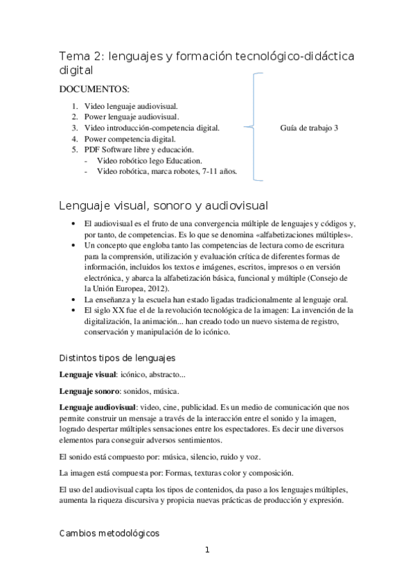 He publicado nuevos apuntes de 2º Recursos didácticos y tecnológicos aplicados a la Educación Primaria: Tema 2 Lenguajes y formación.docx