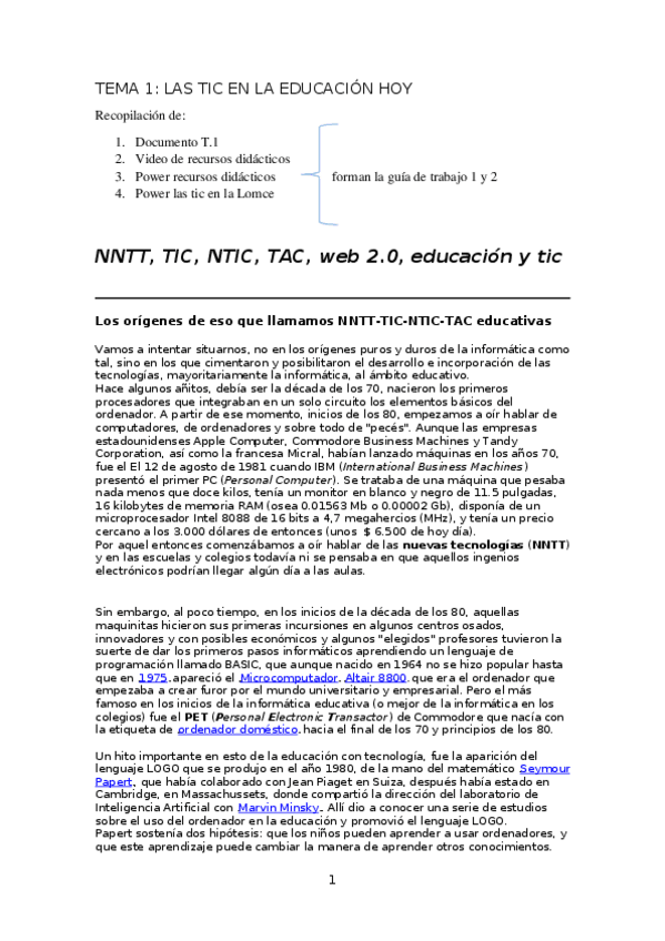 He publicado nuevos apuntes de 2º Recursos didácticos y tecnológicos aplicados a la Educación Primaria: TEMA 1 Las Tics en la educación hoy.docx